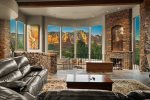 Sky Dancer comfortably sleeps 12 guests and when it’s time to turn in, there are five luxurious en-suite bedrooms, each with its own gas fireplace, walk-in closet, beautiful custom bathroom, and unobstructed pillow views. Once you are here you will never want to leave!
